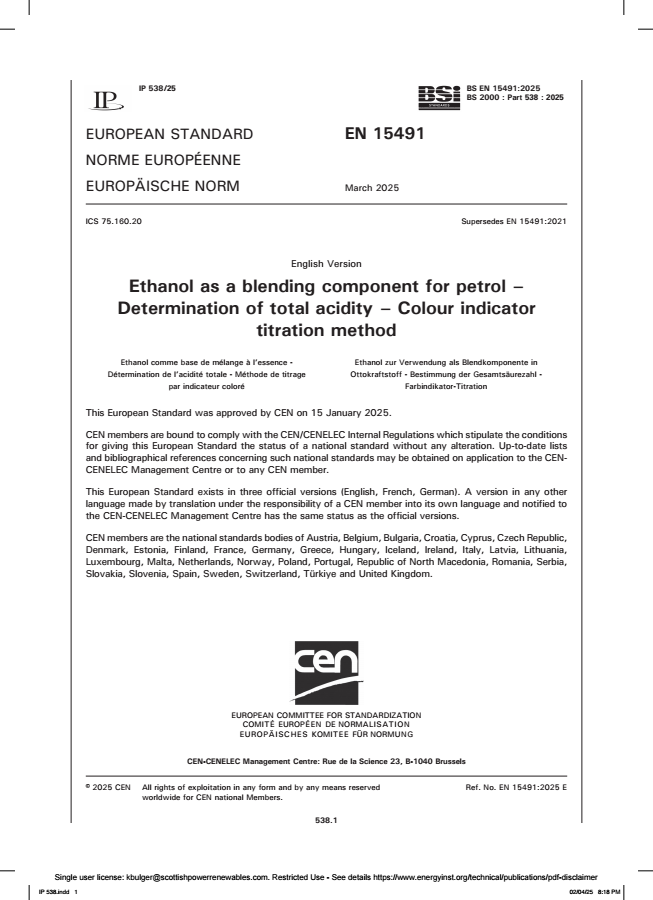 Ethanol as a blending component for petrol _ Determination of total acidity _ Colour indicator titration method