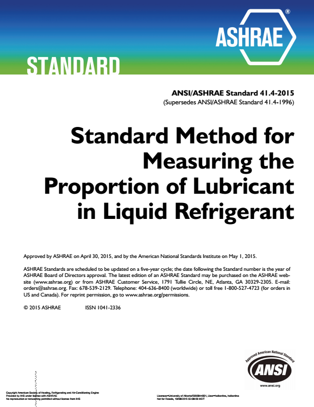 Standard Method for Measuring the Proportion of Lubricant in Liquid Refrigerant