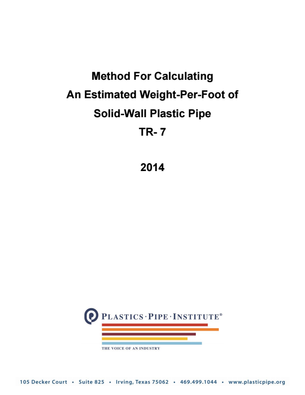 Recommended Method for Calculation of Nominal Weight of Solid Wall Plastic Pipe