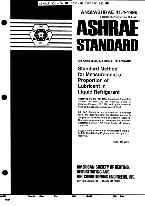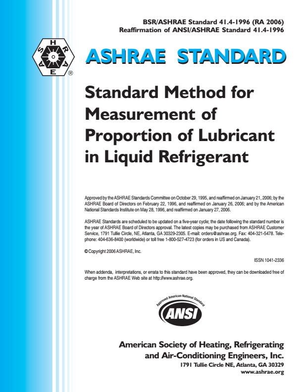 Standard Method for Measuring the Proportion of Lubricant in Liquid Refrigerant