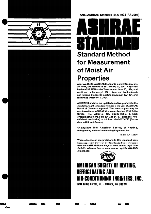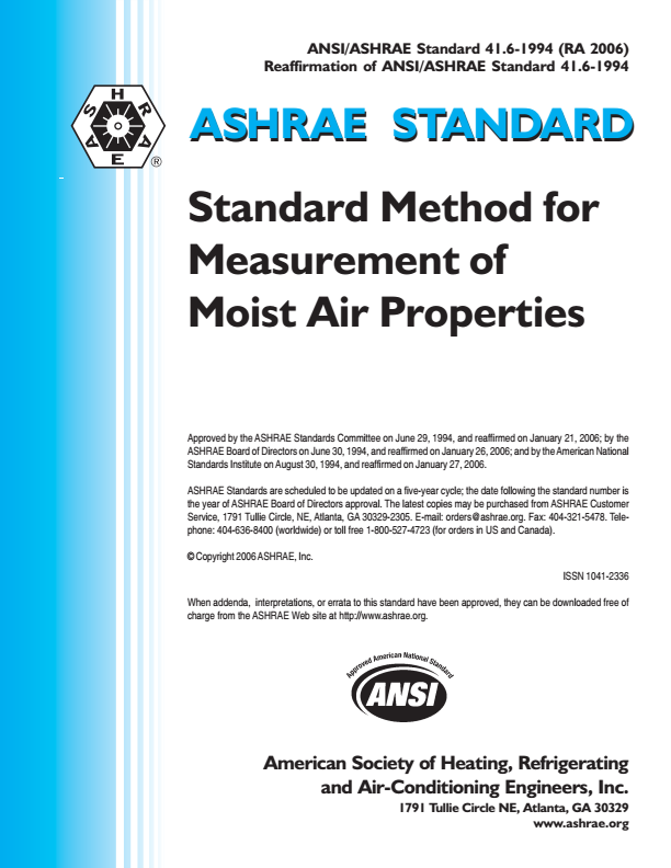 Standard Method for Measurement of Moist Air Properties R(2001)